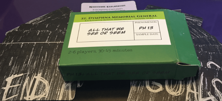 “All That We See Or Seem” is the 13th phenomenon of Coma Ward. It’s the phenomenon people have seen the most if they watched the play through video on the Kickstarter page or read any of the previews. It also sets a great tone for how a game of Coma Ward typically plays out.